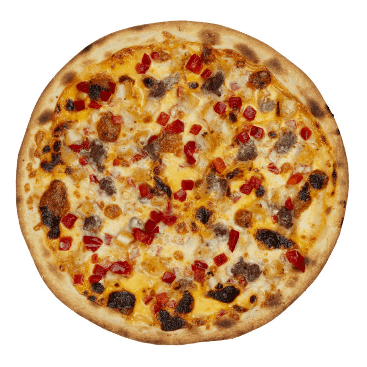 sos bbq, mozzarella, bacon, ceapa, porumb, piept de pui, cheddar